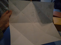 – En la primera foto verás cómo van quedando los dobleces hasta este punto. El último doblez es en cada esquina hasta la primera línea.