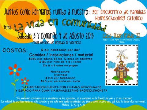 La Comunidad de Homeschooling Católico en México, está organizando su 3er Encuentro de Familias en San Juan de los Lagos, Jalisco. Silvia del Valle me pasó la lista de temas que darán y que verás más adelante. La mayoría de las pláticas la dará el Padre Jorge Zárraga.