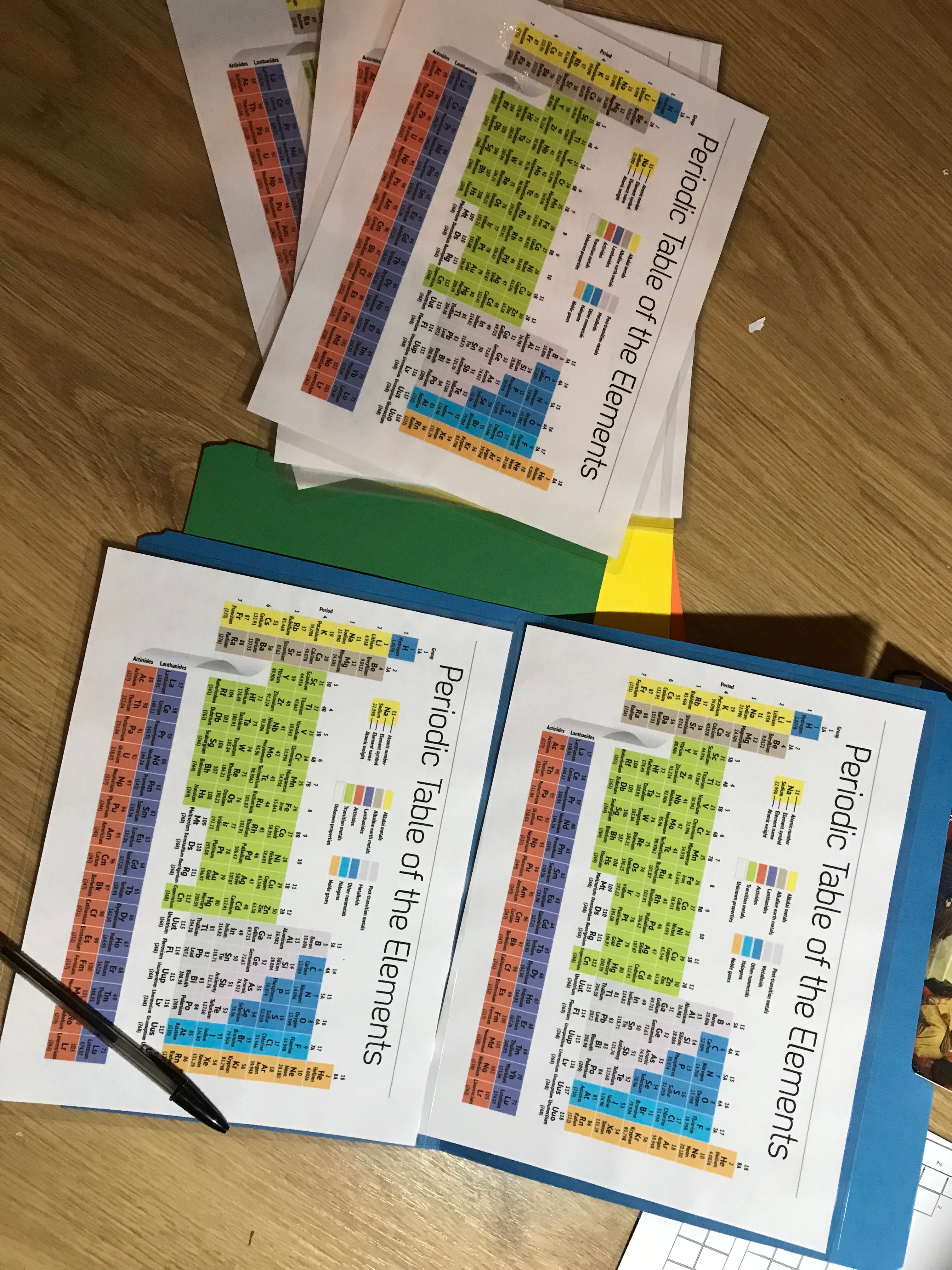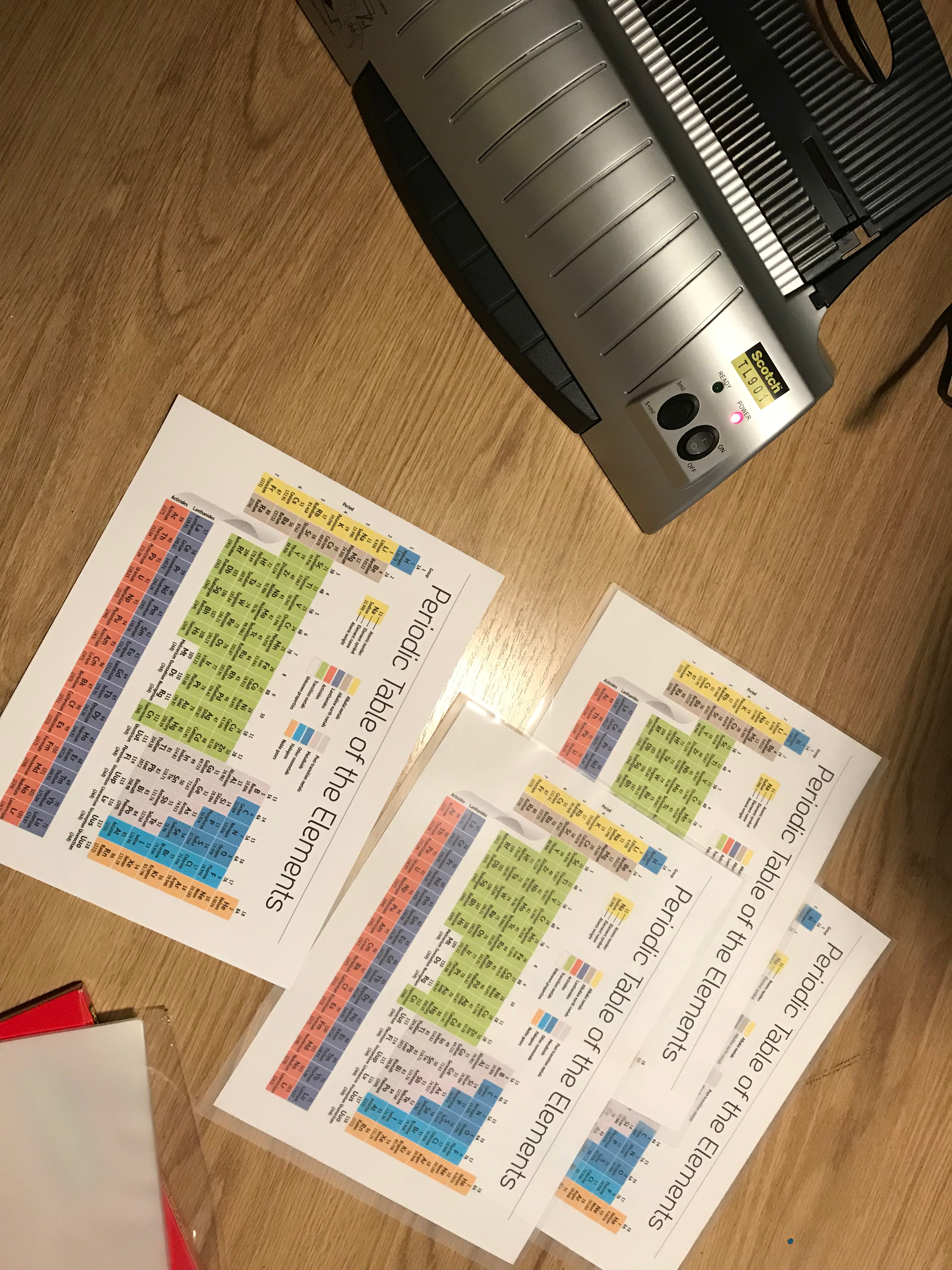 - 2 copias impresas de la tabla periódica (por jugador) (Nosotros los enmicamos):
