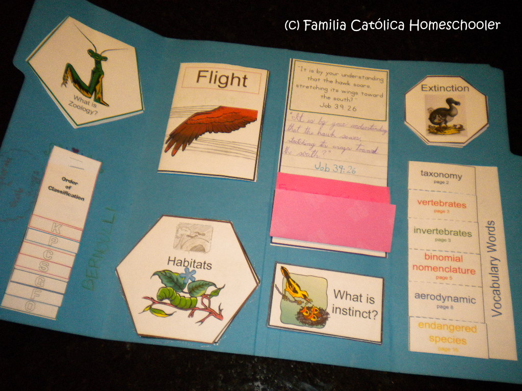 Estos son los primeros Lapbooks de nuestra clase de Zoología 1, en donde estamos estudiando sobre las aves. Este año, estamos realizamos esta clase todos los días, el año pasado lo hacíamos dos o tres veces a la semana durante todo el año. Esto es lo bueno del homeschooling, tú decides cómo organizar tu calendario.