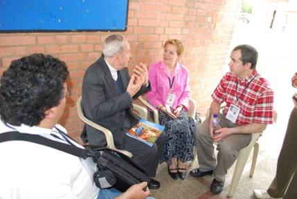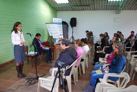 A la 1:00 pm tuvimos el almuerzo, convivio y una presentación del Cibercolegio de la Universidad Católica del Norte que ha tomado bajo sus alas el homeschooling católico en Colombia. En la foto está el Coordinador Académico, el Señor Omar Ruiz explicando en qué consiste la opción que ellos ofrecen para apoyar el homeschooling a través de una educación virtual asistida.