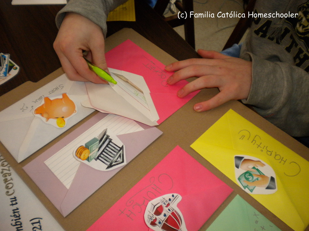 Después pegaron los cliparts que les imprimí y guardaron ahí su dinero (buen ejercicio de matemáticas para calcular porcentajes).